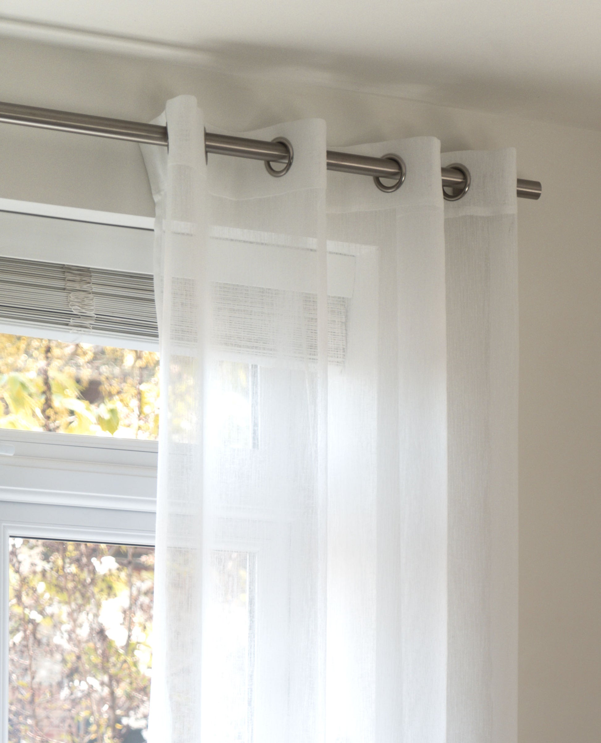 A simple white recycled panel with an eyelet heading in white. Made from 100% recycled polyester, these panels have a linen look. A great choice for contemporary homes.